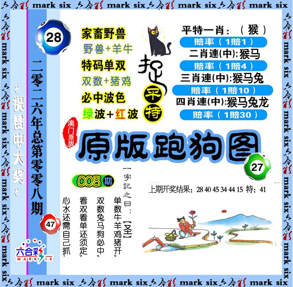 | 007期五肖 | 马虎猴牛羊 | 开:牛41中 |