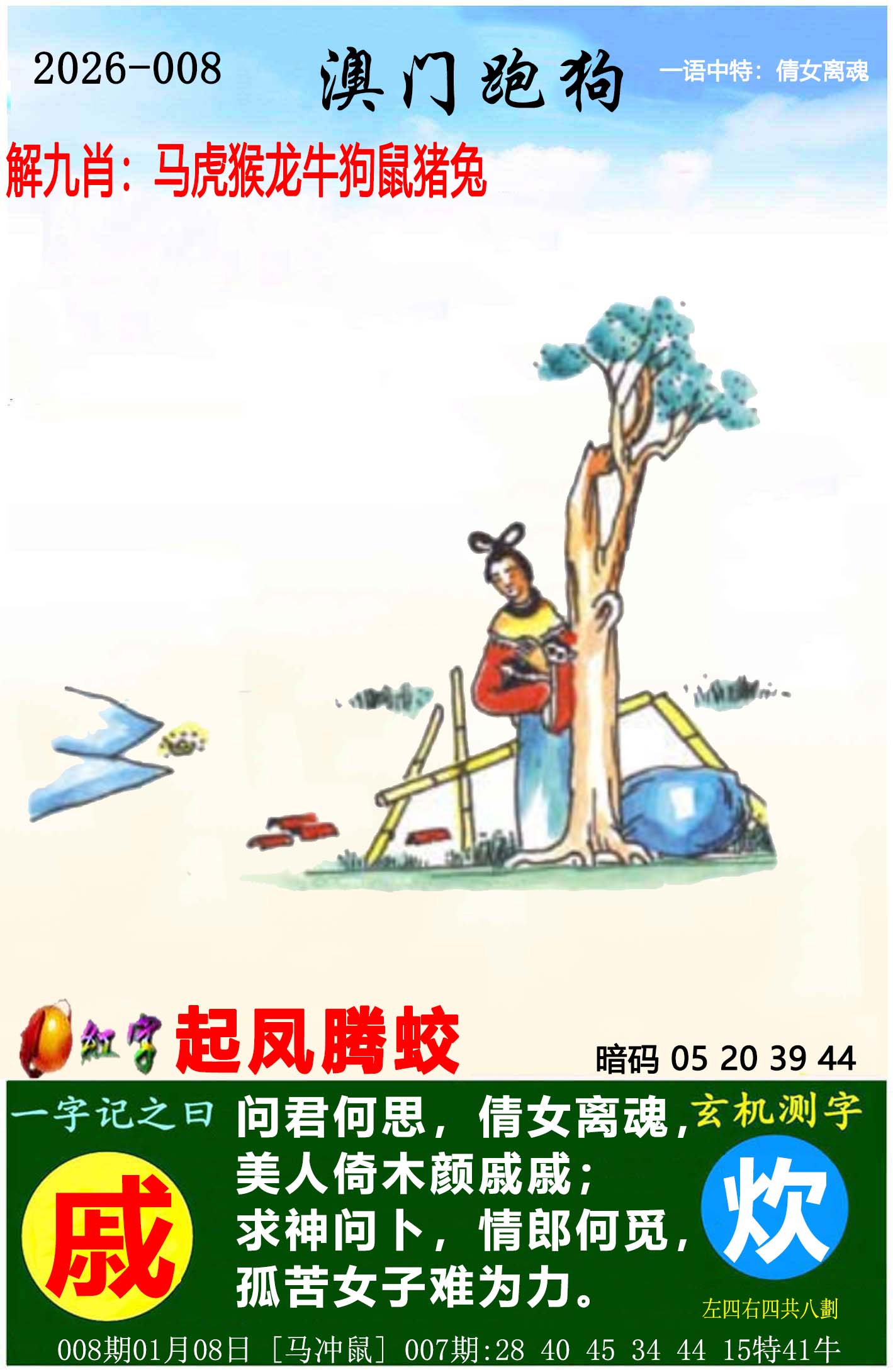 | 008期七肖 | 龙虎羊鸡猪兔狗 | 开:?00 |